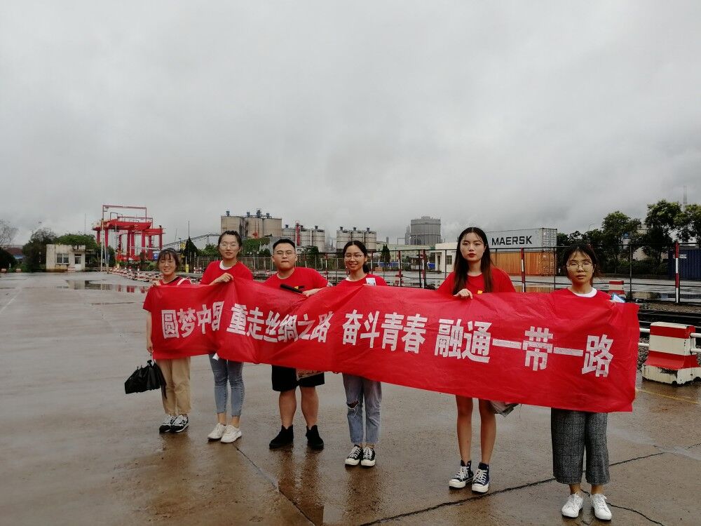 结束了在中国港口博物馆的调研活动,实践队成员来到了宁波北仑港国际集装箱码头有限公司。在港口接待人员的带领下,实践队参观了北仑港港口码头、海铁联运专列以及“一带一路国际物流联盟”中的海铁联运部分,“义甬舟”大通道开放将义乌铁路口岸的陆运与宁波舟山港的海运连接起来,形成铁路和港口联运的伟大格局。