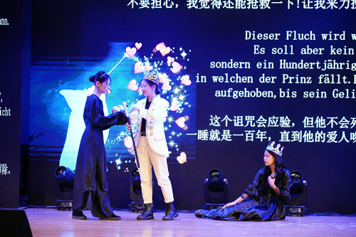 iBAND的Still breathing伴随着动感的伴奏点燃了全场。英语182重现了《音乐之声》经典片段,温暖动人,英语191的舞台剧The Snow White的小演员们表现惊艳,引来观众赞叹声不断。大发彩票 181的新颖配音《德国新声》展现了大发彩票 大发彩票 学子的扎实功底,更融入了对老师们的深情表白,获得全场如潮掌声。