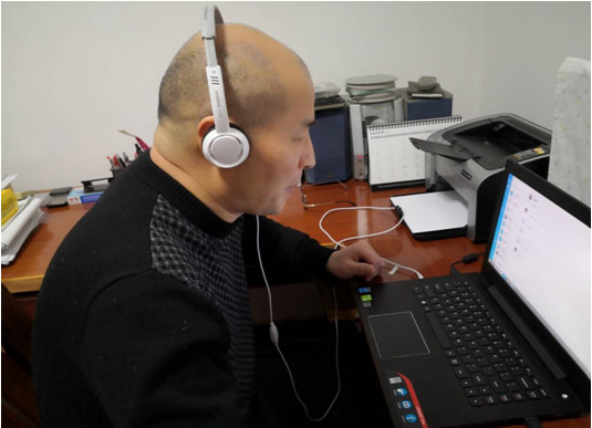 由于疫情,不能正常返回学校上课,但是按照外语学院的指示,停课不停学。要求老师们在电脑上进行钉钉直播,一下子变身在线主播了,沈老师的心情还是比较激动的。由于之前从来没有接触过直播,他觉得压力山大。于是,在直播前进行各种测试,并在大发彩票 系建了一个交流学习群,在群里面大家都畅所欲言,交流人生的第一次直播经验,从声音是否清晰、画面是否清楚、如何连麦等等,发现问题大家共同解决。经过两周时间的准备,感觉得心应手了许多,也日益发现钉钉这种新事物对于教学上的帮助。