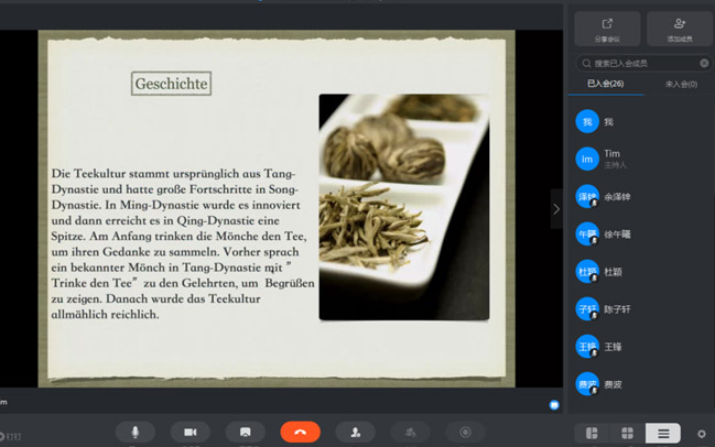 下图中,图1-2为连麦状态下学生通过屏幕分享做报告展示,图3为视频会议模式下的屏幕分享做报告展示,对比两种模式的效果得出后者的实际操作性更强,效果更好。