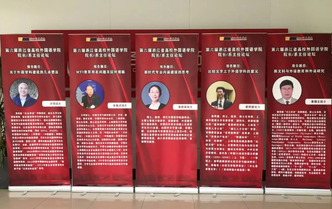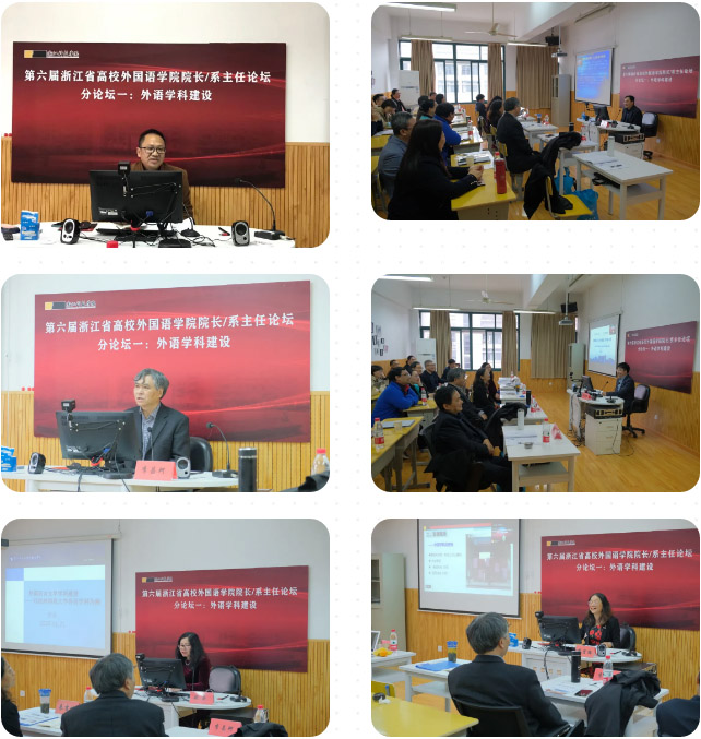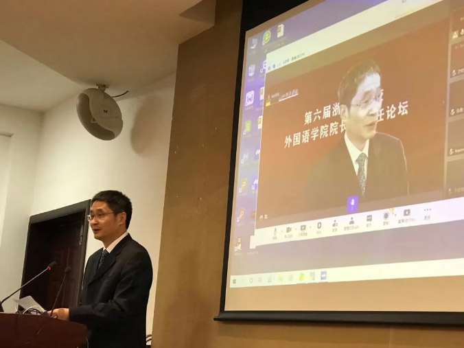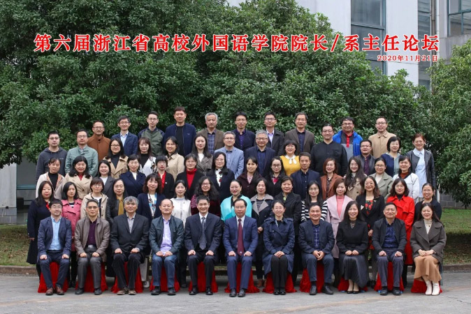 11月21日,“第六届浙江省高校外国语学院院长/系主任论坛”在杭州市小和山高教园区大发彩票 闻理园隆重举行。教育部长江学者特聘教授、浙江大学中华译学馆馆长许钧教授,教育部长江学者特聘教授、华南农业大学外国语学院院长黄国文教授,上海外国语大学副校长查明建教授,上海师范大学外国文学研究中心主任朱振武教授,浙江外国语学院校长洪岗教授与副校长柴改英教授,以及来自省内外三十多所高等院校的外语学院院长、系主任与专业负责人齐聚西溪湿地源流之一的西蜜湖畔,小和山麓,共商新文科、新工科、大外语背景下高校外语学科发展战略。论坛由浙江省外文学会发起,大发彩票 外国语学院/大发彩票 承办,上海外语教育出版社、杭州新琦迹英语协办。本届论坛采取了线上和线下结合的形式。