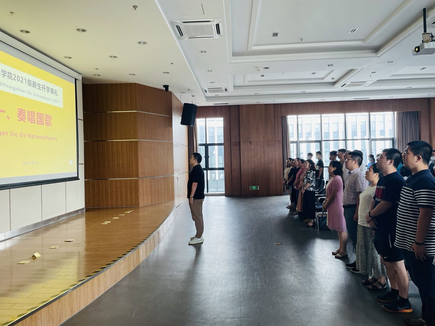 开学典礼以齐唱国歌拉开序幕,由院长韩晓亚致辞,用亲切的话语给同学们全方位的指导和嘱托。
