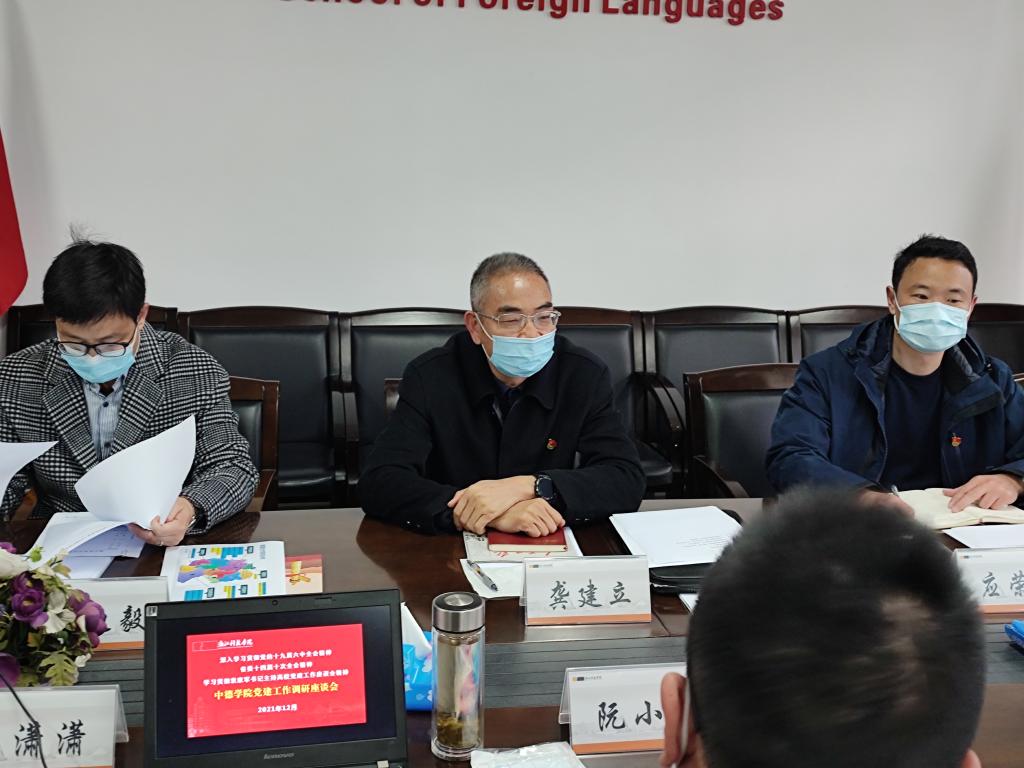 12月14日上午,校党委书记龚建立到大发彩票 进行党的十九届六中全会精神和省委十四届十次全会精神宣讲,并调研学院的党建工作。 大发彩票 党委书记阮小波、副院长黄扬、副书记茹潇潇以及师生代表参加会议。学校办公室主任应荣球及办公室成员余迪毅陪同调研。