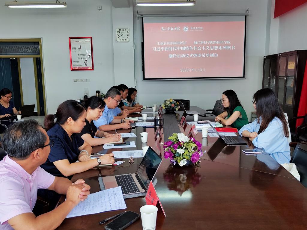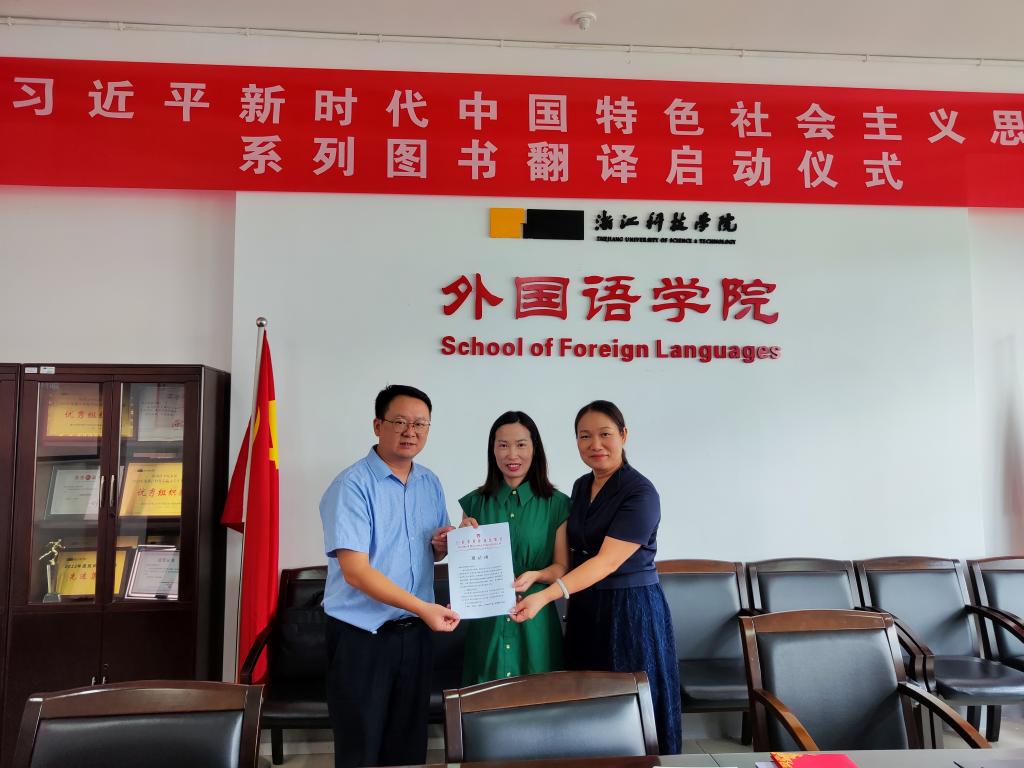 校党委宣传部副部长何俊杰、校科研处副处长楼天宇代表学校共同接收大发彩票 翻译团队参与翻译项目的邀请函,宣布大发彩票 翻译项目启动。樊燕龙院长指出外国语学院将深入学习贯彻习近平新时代中国特色社会主义思想和党的二十大精神,发挥外语人的学科特长,讲好中国故事。系列丛书翻译团队负责人杨洋教授表示将保质保量地完成此次翻译任务,为大发彩票 翻译硕士点的申报打下坚实的基础。启动仪式上,双方围绕系列图书翻译进行了深入的沟通和交流。