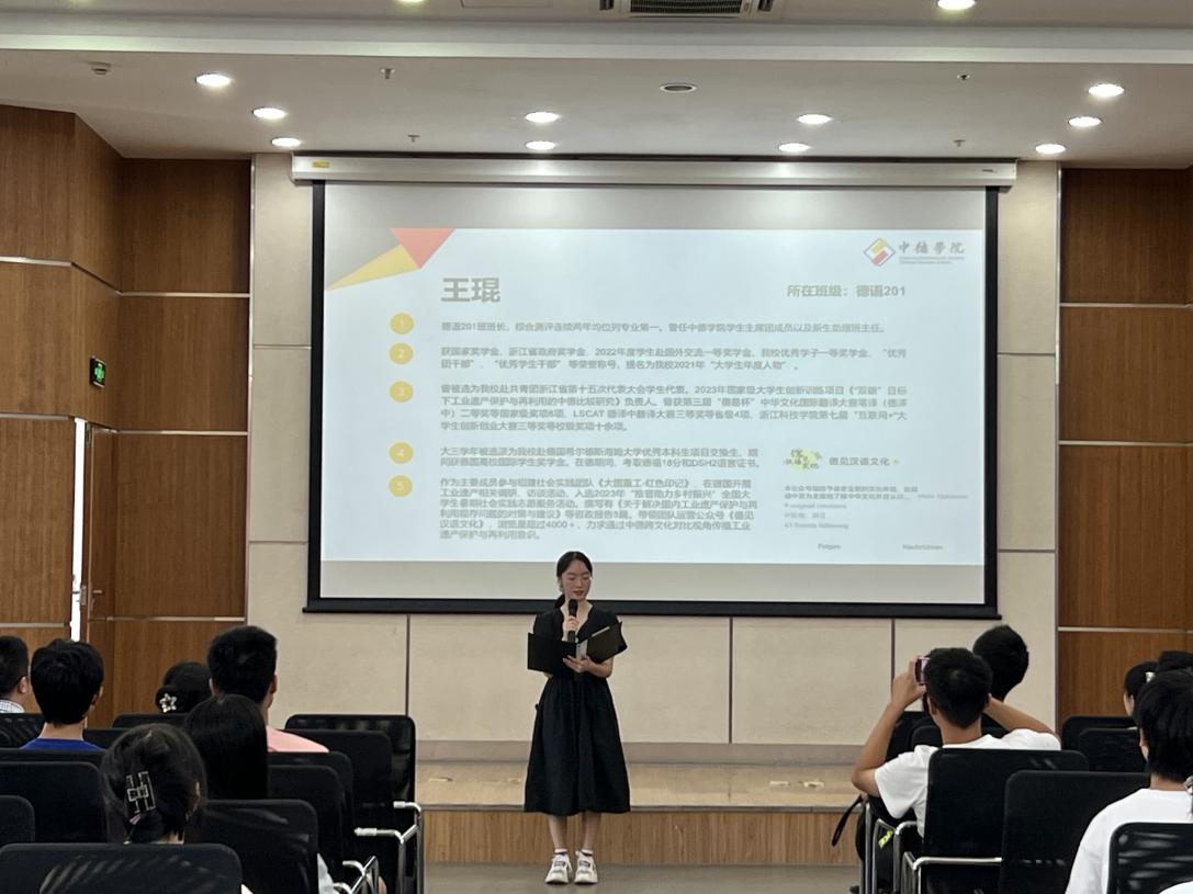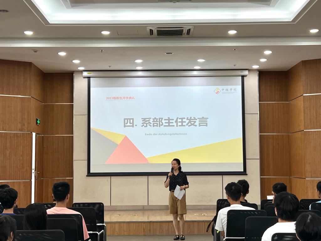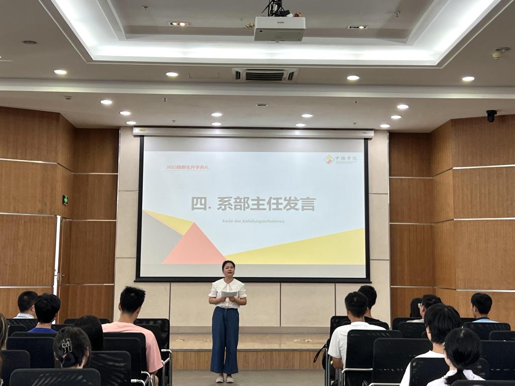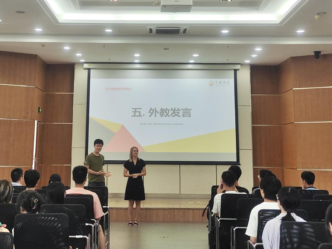 学院的外教团队亦是教师团队中的重要力量,彰显了大发彩票 的国际化办学方针,典礼上,来自奥地利的外教Daniela用大发彩票 介绍了自己,并对同学们表示热烈欢迎。
