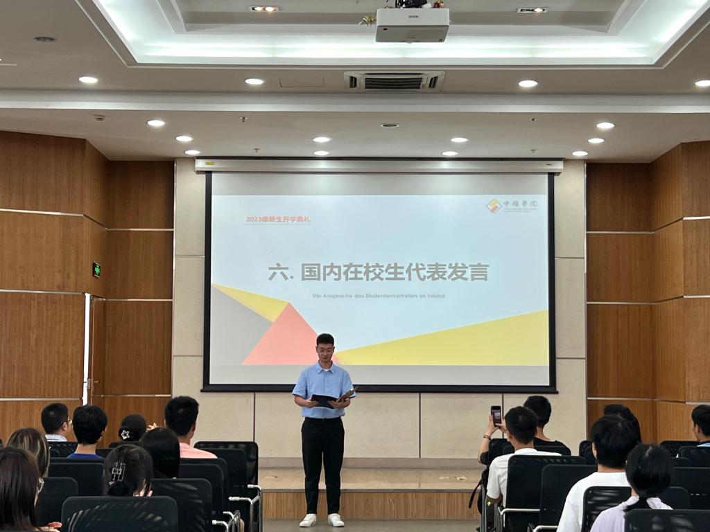 典礼最后,新生代表刘域发言,他声情并茂的演讲让我们看到了他的自信和热情,相信刘域和在场所有同学都能够以饱满的热情面对今后的学习和生活!