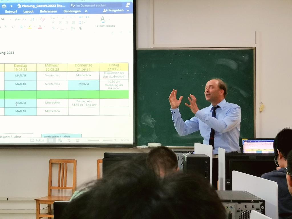 联合培养“2+3”项目电气类专业学生进行了交流。Kutzner教授就电气学院相关概况、学校网站相关信息及使用方法、专业培养方案等内容进行了详尽的介绍,并对接下来一周的课程内容进行了说明,同学们也对后续课程内容充满期待。