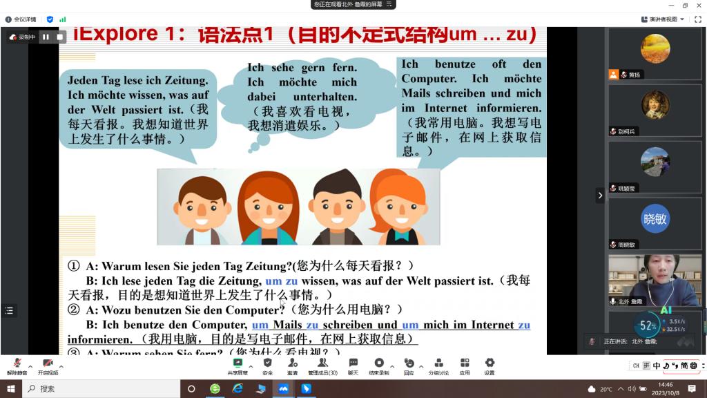 报告结束后,詹老师和各位师生进行了热情的互动,特别是对于POA教学法在小语种教学中的实践应用和基于POA教学法的