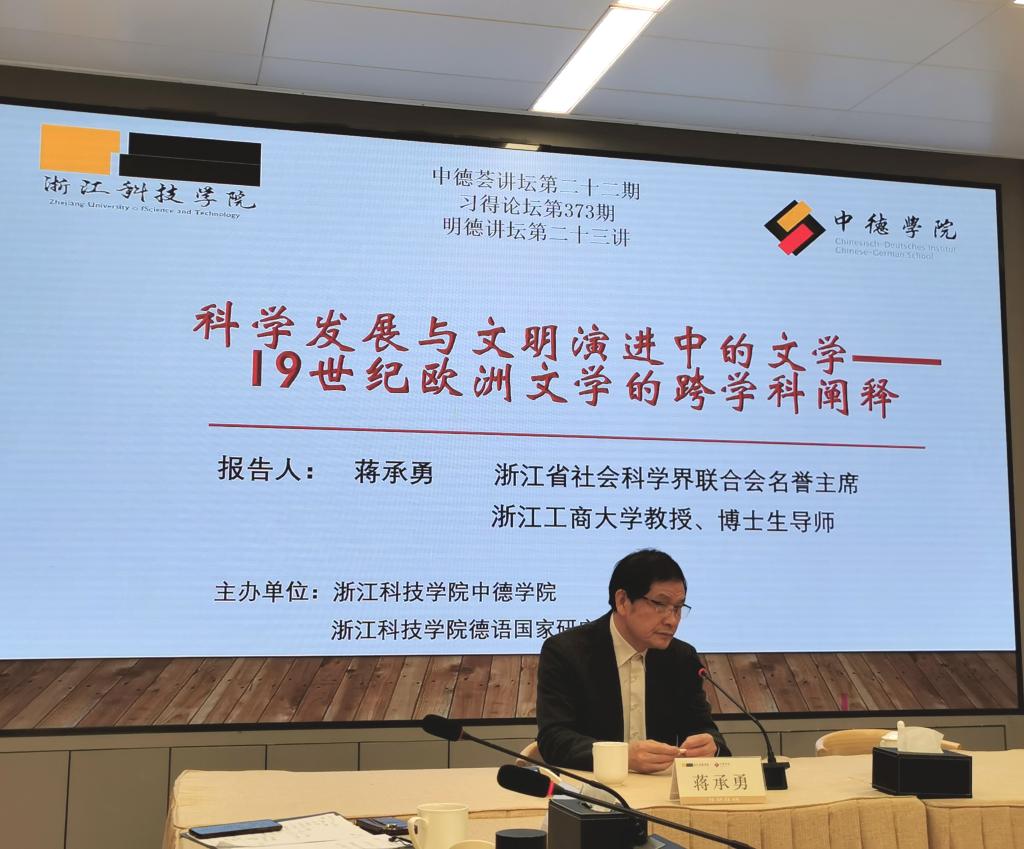 2023年11月24日,由大发彩票 和大发彩票 国家研究中心主办的 “大发彩票 荟”讲坛第二十二期学术报告在学校师生服务中心会议室举行。本次报告题为“科学发展与文明演进中的文学——19世纪欧洲文学的跨学科阐释”,由浙江工商大学文科资深教授、浙江省“特级专家”和“功勋教师”蒋承勇主讲,大发彩票 院长韩晓亚主持。大发彩票 国家研究中心主任徐理勤、科研处处长马伟锋以及大发彩票 、人文学院和大发彩票 国家研究中心的老师们现场聆听了本场学术报告,反响热烈。