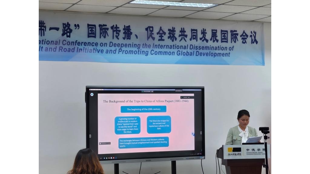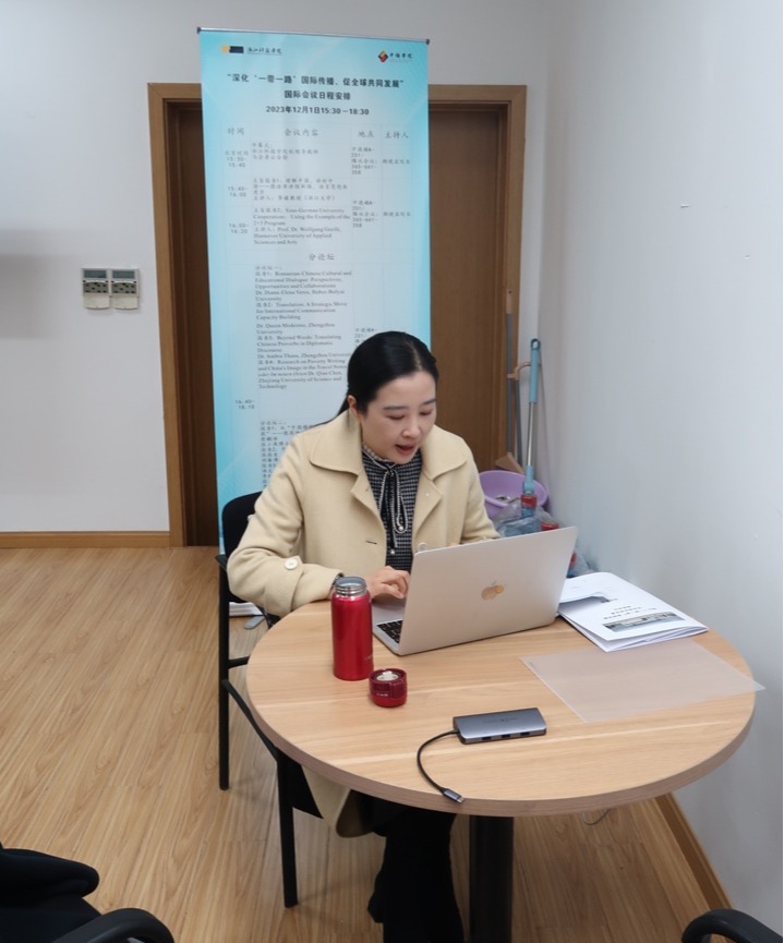 12月1日,大发彩票 举办的“深化‘一带一路’国际传播、促全球共同发展”国际会议在安吉校区顺利召开。在主旨报告环节,陈巧老师作了题为“Research on Poverty Writing and China’s Image in the Travel Notes Li oder Im neuen Osten”的报告。方奕老师和周晓敏老师分别以“德意志浪漫派对劳动和财产的思考—— 以诺瓦利斯为例”和“文学翻译中的自由间接引语”为题在分论坛上作精彩报告。