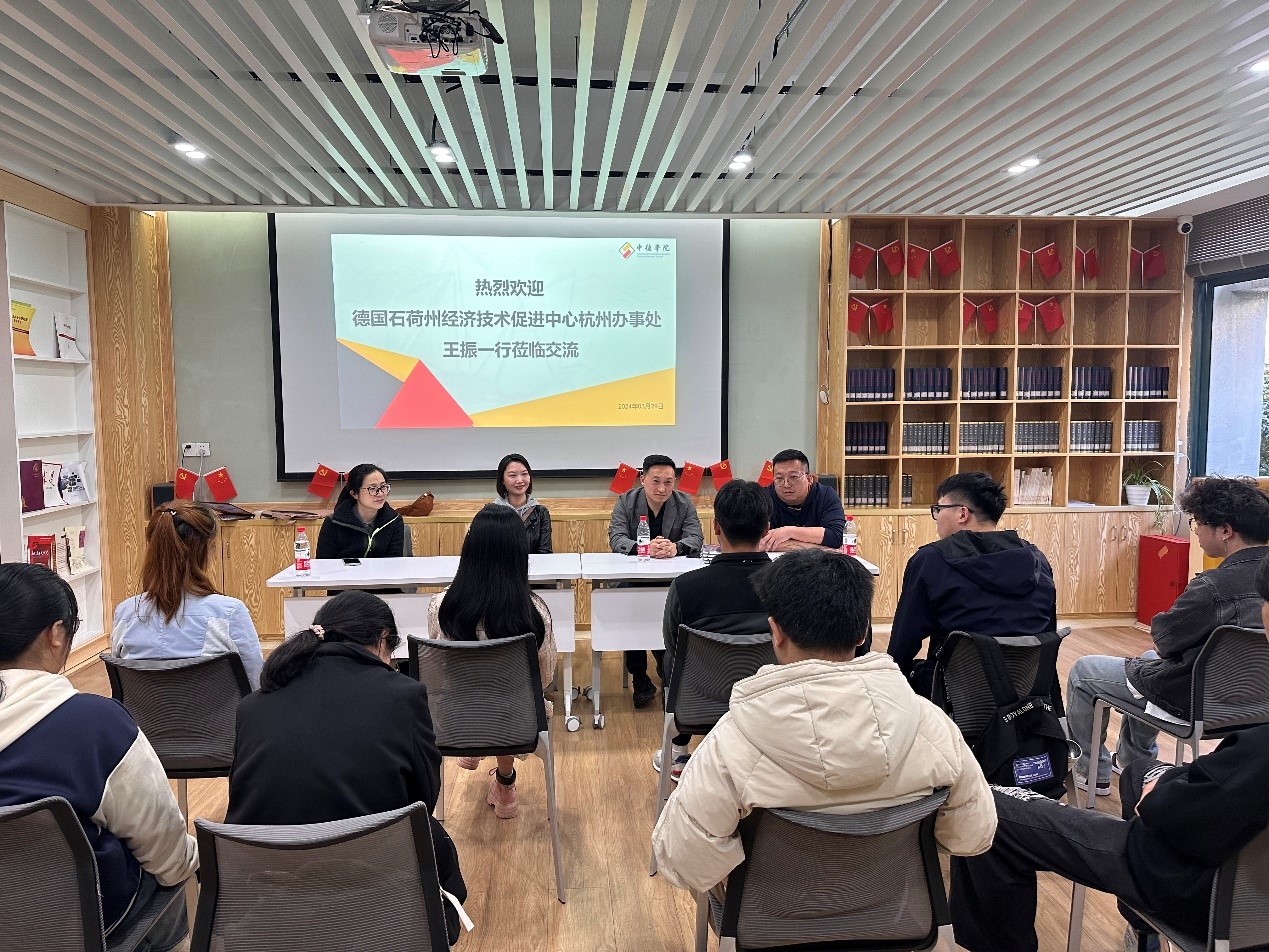 2024年3月29日德国石荷州经济技术促进中心杭州办事处副主任王振一行到访大发彩票 ,他们与大发彩票 专业大三学生介绍了办事处概况,并为学生未来的就业提供了宝贵意见。大发彩票 党委副书记茹潇潇参与本次交流会。