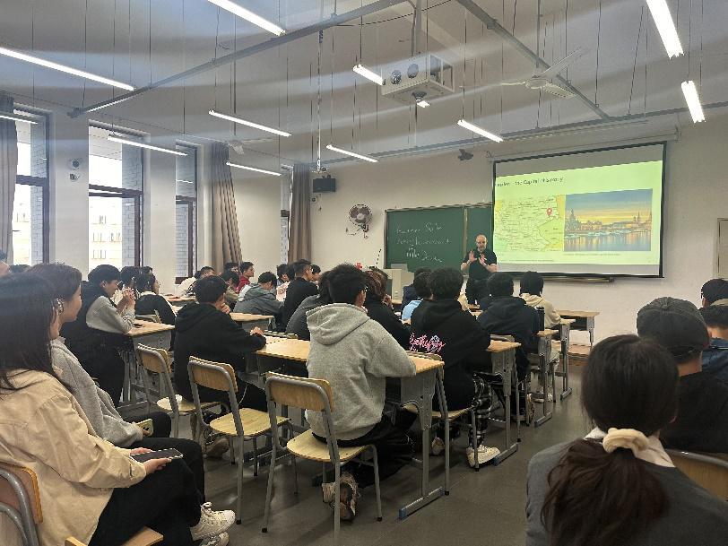4月2日上午,德国德累斯顿技术经济大学机械工程学院教授Gunther Claus Stehr来到安吉校区,为学院“2+3”项目一年级机械专业的学生举办宣讲会。会上,Stehr教授为同学们详细介绍了德累斯顿技术经济大学的办学特色、专业设置以及机械工程学院的奖学金项目,并回答了同学们关于德国学习和生活的问题。