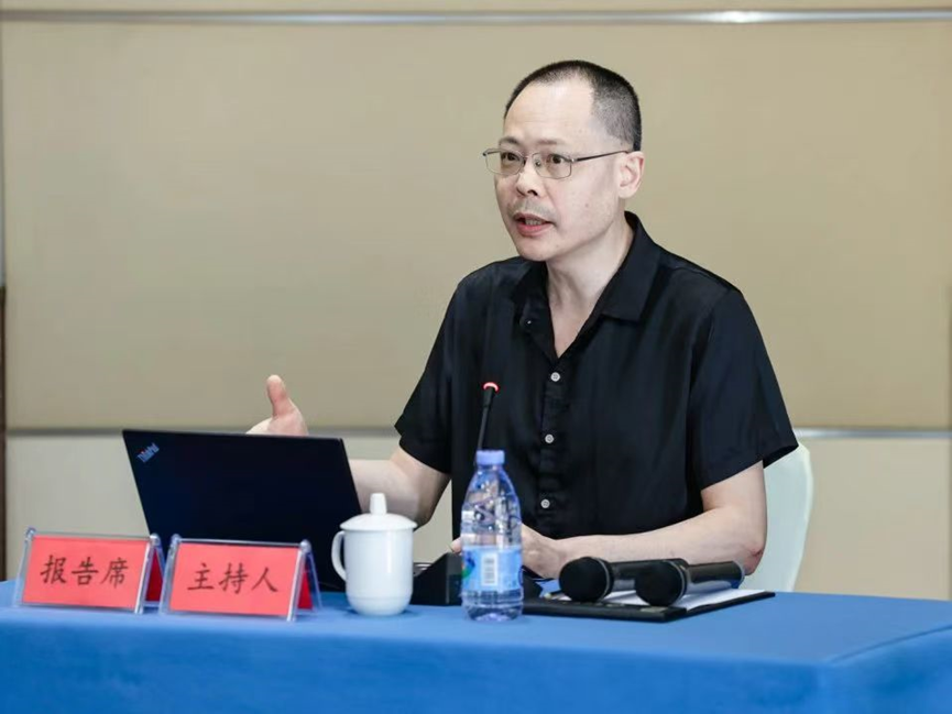 浙江大学杨革新教授作题为“从作者已死到AI写诗:人工智能时代文学的危与机”的精彩报告。杨教授讲解了从作者之死到文学之死、AI创作的基本原理、人工智能与文学出路三个部分,展示了文学研究的中心从作者到文学文本再到读者的变迁。他指出,在人工智能时代,文学的样式发生了变化,文学工作者应该从科技发展给文学带来的挑战中发现转机,找到出路。