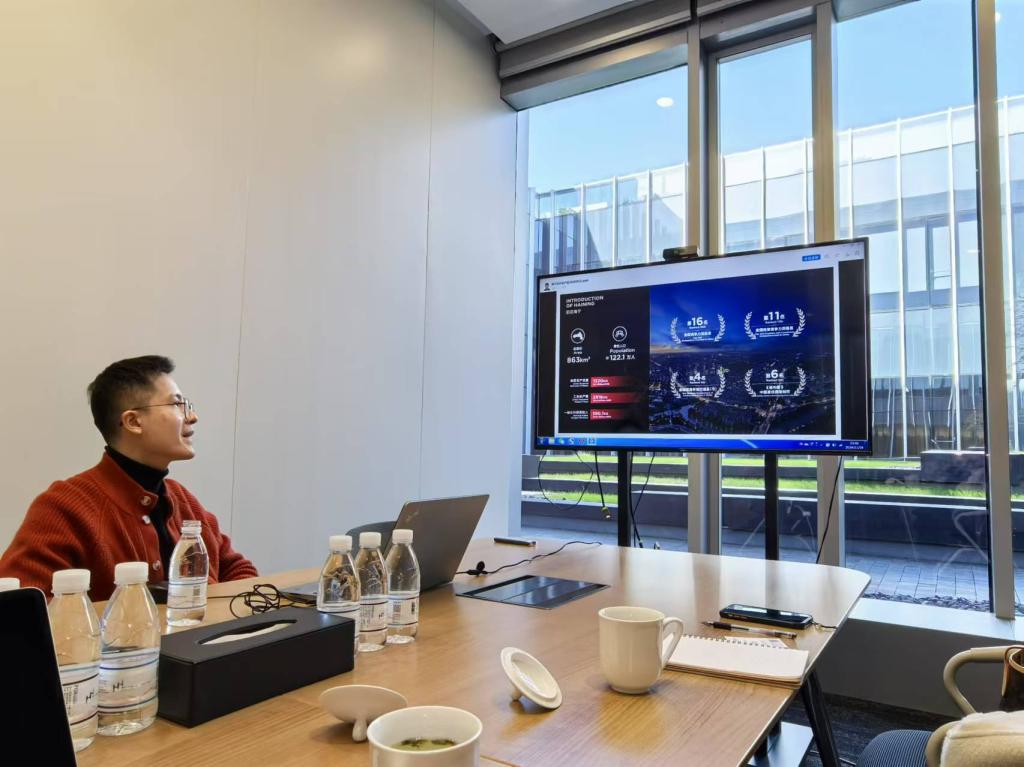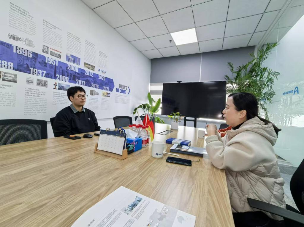 裘晓晨介绍了海宁经济开发区的总体规划、发展特色和重点行业领域,强调园区企业对高层次专业人才的迫切需求。韩晓亚介绍了学校学科专业基本特点,提出学院在培养和输送企业急需人才上所做的努力和成效,表达了愿意与企业深入交流、共同解题的想法和意愿。元峻机械设备(浙江)有限公司负责人详细介绍了企业发展历史和经营现状,提出对于行业细分领域人才缺口的担忧,以及与高校在定制化人才培养上合作的愿景,双方就如何共享校企各方资源,加强国内外联动等具体问题上进行了深入沟通,达成下一步合作的一致意见。