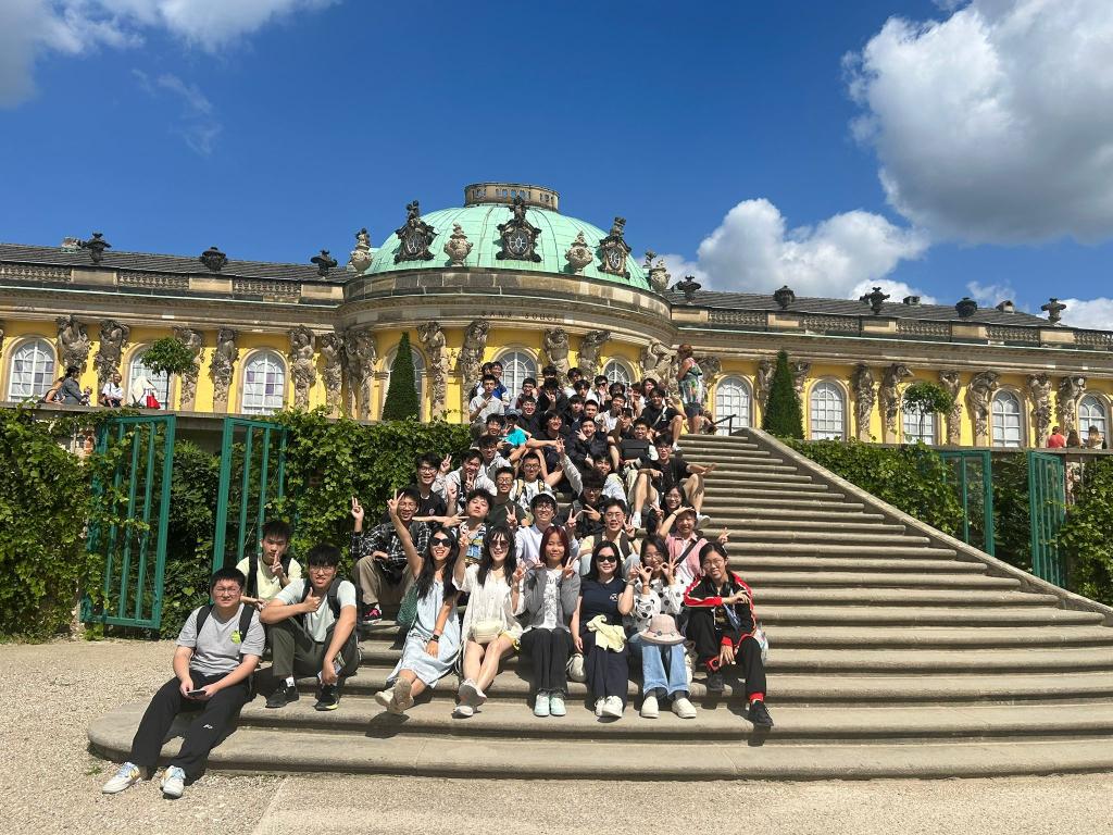 近日, 大发彩票 组织的暑期游学团顺利完成德国行程。42名柏林团与14名杜塞尔多夫团“2+3”项目学生于8月29日平安返程,在为期四周(8月2日-29日)的沉浸式学习中,依托德国IIK语言学院资源,通过语言强化与文化探索双轨并行的模式,实现了大发彩票 能力与跨文化素养的显著提升。