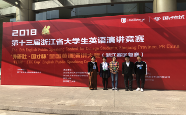 为贯彻《教育部关于全面提高高等教育质量的若干意见》,继续深化大学英语课程教学改革,展示和进一步提高大学生英语表达能力,激发大学生学习英语的积极性,提高人才培养质量,浙江省大学生科技竞赛委员会主办,浙江省高校大学外语教学指导委员会、浙江省大学外语教学研究会、浙江大学承办的浙江省大学生英语演讲与写作竞赛(A类)近日在杭州举行。