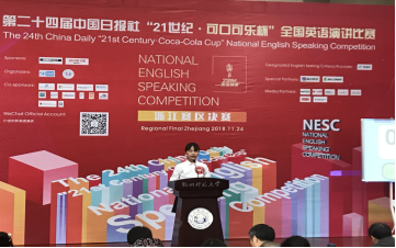 据悉,“21世纪•可口可乐杯”全国英语演讲比赛由中国日报社于1996年创办。多年来,作为国内水平最高的英语竞赛之一,大赛已在北京、上海、广州等大陆主要城市及香港和澳门巡回举行,并得到国际权威英语教学和考试机构的大力支持和高度重视。本届大赛全程分为互联网选拔赛、校园选拔赛、地区决赛、全国半决赛及全国总决赛等阶段。本届大赛共吸引了全国700多所高校的近5000名学生报名参赛。
