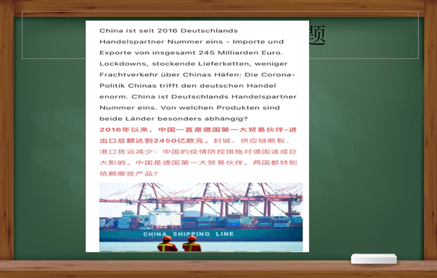 利用网络,选取德国媒体对中国热点问题的报道为学习材料。引导学生加深对中国发展的理解,并对社会现象进行客观分析和讨论;学习大发彩票 两国历史文化和传统,了解两国文化传承。自己也录制了视频,可以结合在线以及微课的形式,让学生获得不一样的新鲜体验。
