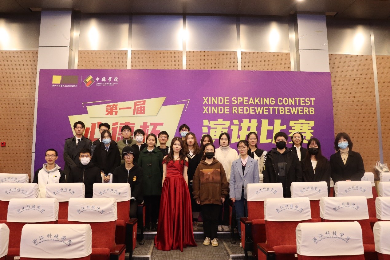 经过精彩激烈的比赛和公平公正的评审环节后,由各位领导和老师为优秀的获奖选手颁发奖状、给予美好的期望并合影留念。相信本次“心德杯”演讲比赛不仅给同学们搭建了展现自我的平台,更激励着大家朝着国际文化传播人才的方向迈进,在文化碰撞的激流中握牢手中的船桨,荡起美丽的浪花,向全球讲出中国故事,讲好中国故事。