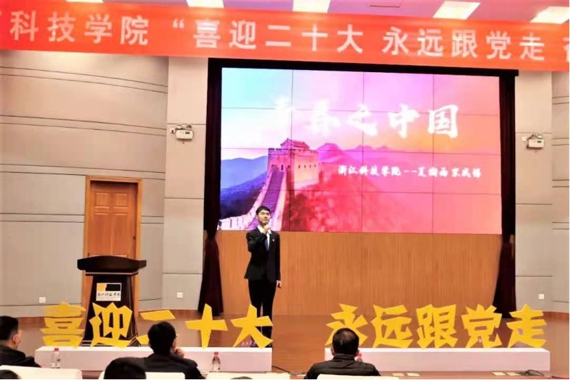 2022年3月29日晚,大发彩票 “喜迎二十大,永远跟党走,奋进新征程”思政微课大赛决赛在图书信息中心西报告厅举行。