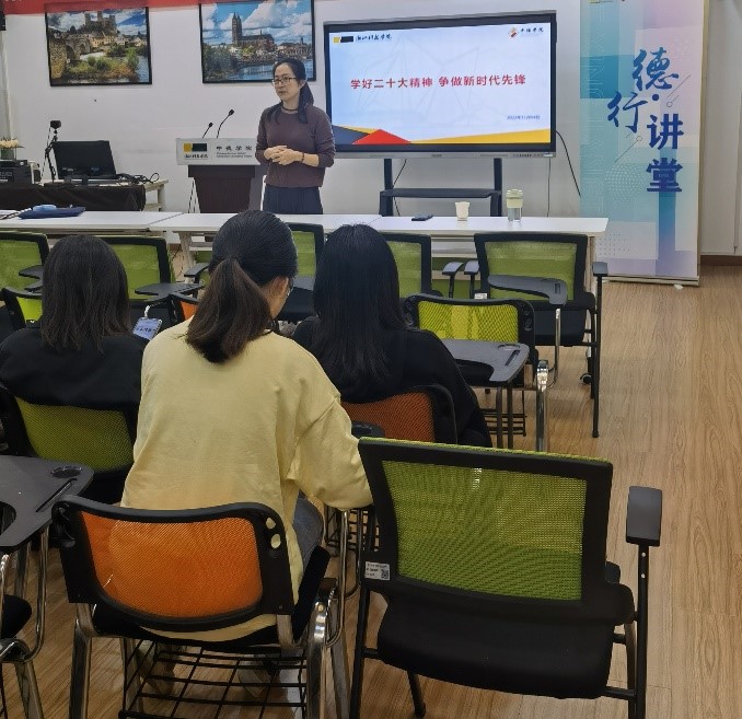 2022年11月4日上午8:30,大发彩票 于A3-516举办了二十大精神宣讲报告会,本次宣讲报告会主题为“学好二十大精神 争做新时代先锋”。校党委原副书记、正校级巡视员,省关工委报告团成员,校关工委常务副主任胡浙平作宣讲报告,大发彩票 党委副书记茹潇潇主持报告会。