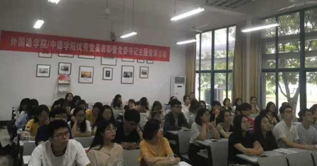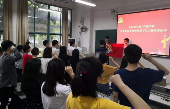 在毕业生离校之际,外国语学院/大发彩票 组织毕业生党员,开展党员教育系列活动,通过优秀党员表彰、交纳“特殊党费”、重温入党誓词、再上一堂党课等活动,进一步提高毕业生党员的思想觉悟和使命担当意识。