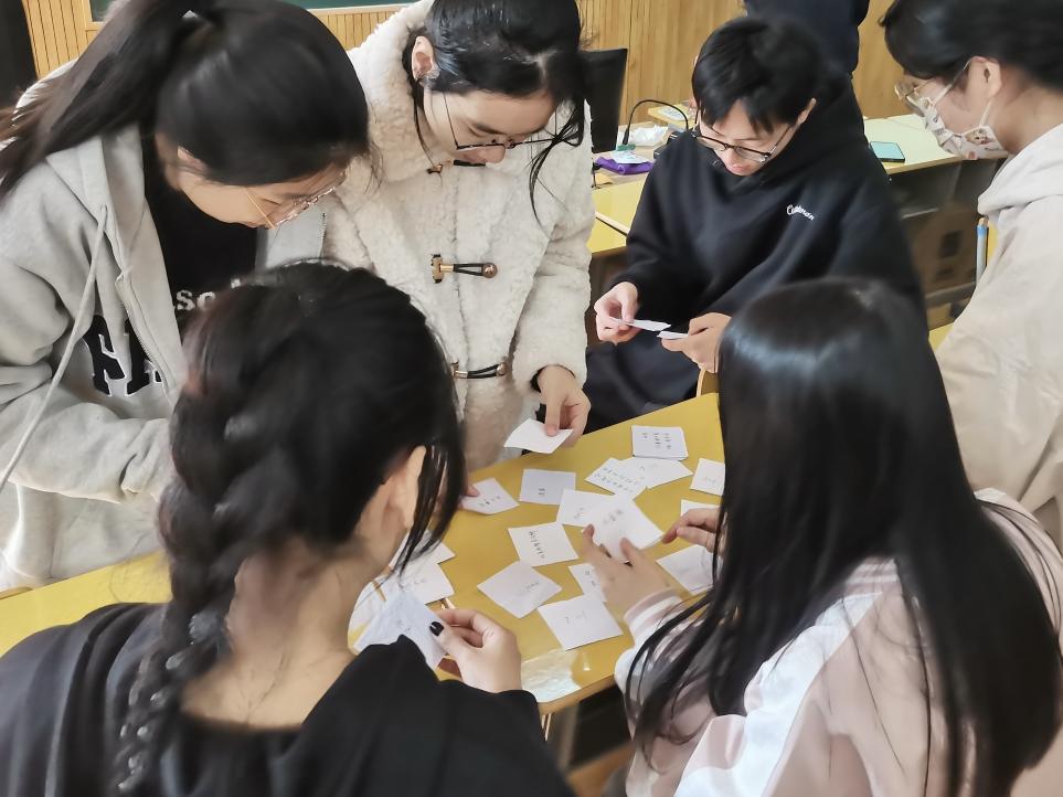 本次活动各位学生通过抽签被分成四个小组,进行两个环节的知识竞赛比拼。第一个环节为在规定时间内,将三类“记忆卡片”正确进行配对,第一类卡片为时间,第二类卡片为地点,第三类则为不同的事件。各小组充分发挥各自的党史知识理论储备,配合默契,最终结果更是旗鼓相当,充分展现了各位党员良好的精神面貌。