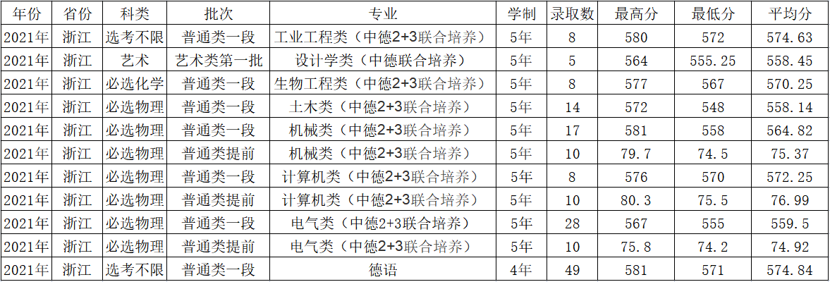 2021年各专业录取统计(浙江省)